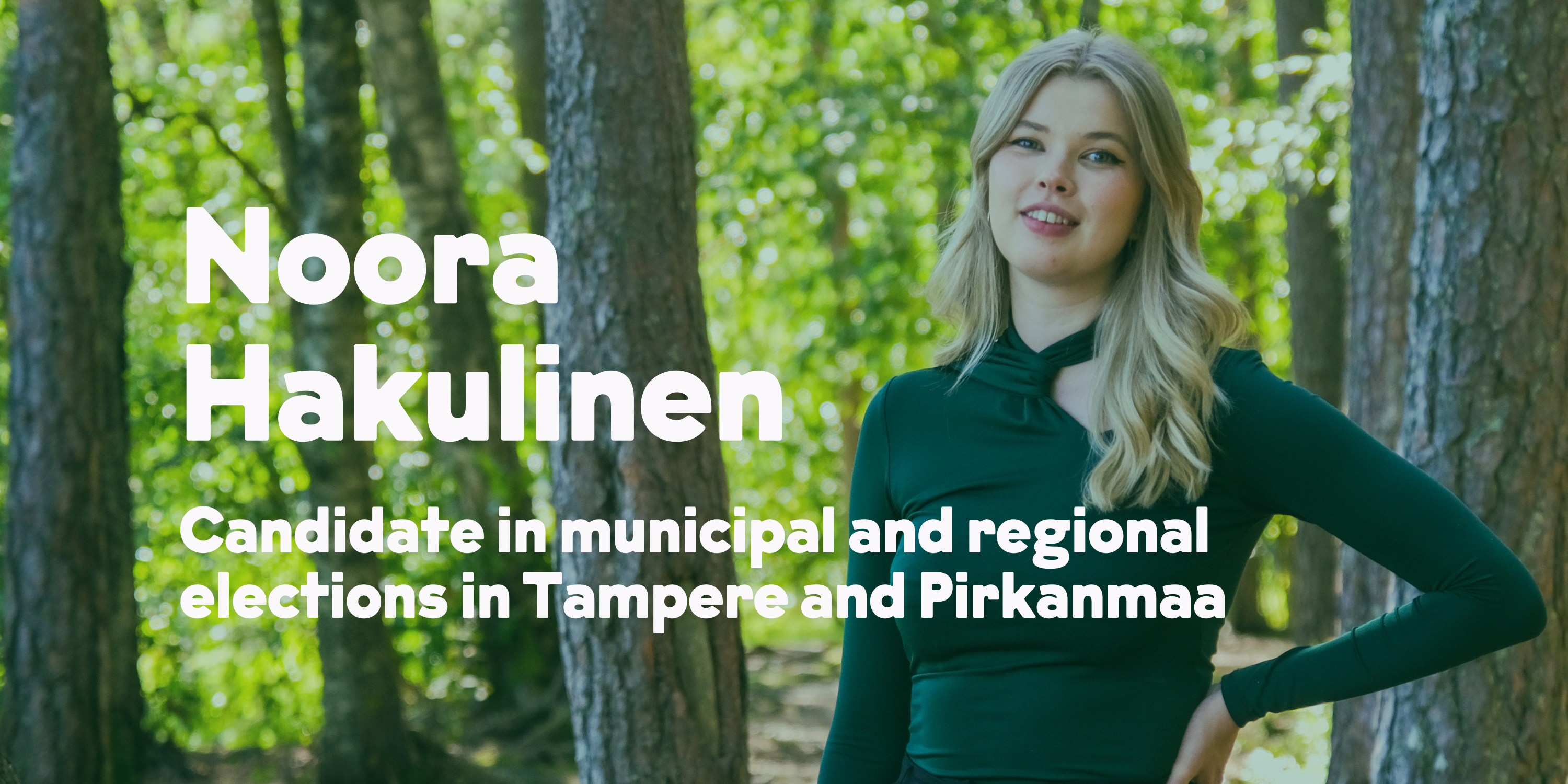 Hey! I am Noora Hakulinen, a 25-year-old Journalism Master’s Student involved in student advocacy. I want to make Tampere a city that welcomes people to study, live, and build their future.